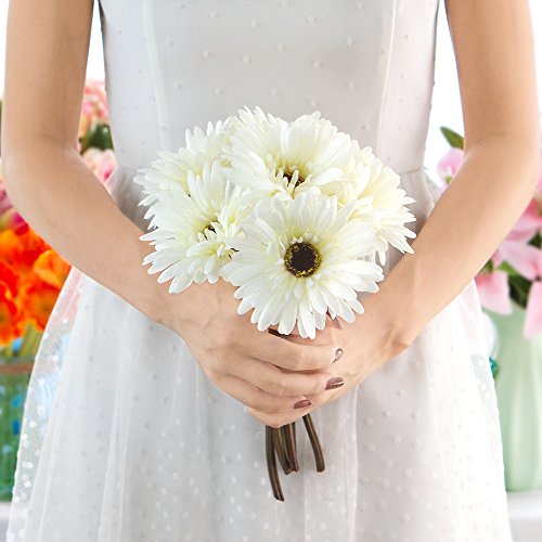 Gerbera Daisy Artificial Flowers for Farmhouse Home Decor 7 Stems Silk Daisies Flower for Wedding Bouquet Living Room Office Party DIY Decoration (White)