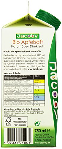 -. Title : Jacoby Bio Apfelsaft Naturland, 8er Pack (8 x 750 ml)
