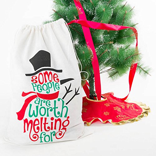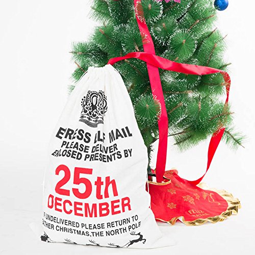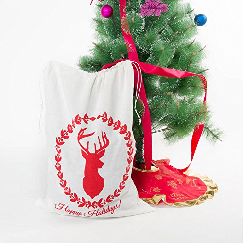 Christmas Gift Bag Drawstring Cotton Canvas Santa Sack Rustic Vintage Stocking Bags Xmas Party Decoration