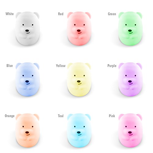 SillyCone Soft Silicone Rechargeable LED Night Light with Built-in Li-Ion Battery and USB Cable for Charging (Bear)