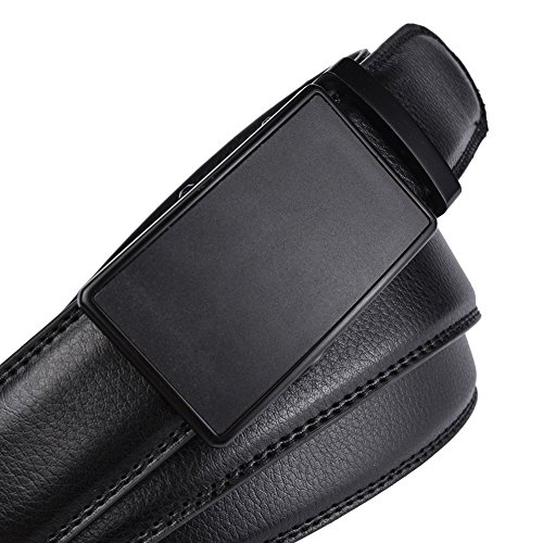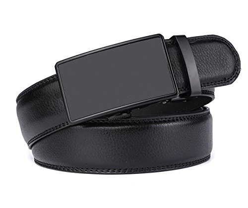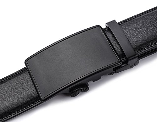 Belt Features: (a)The belt is sleek and clean, and provides a perfect fit for everyone. (b)plz buy one size larger than your waist,oversize for special demand (c)The tip of the belt inserts into the ratchet belt buckle, where a locking mechanism holds the belt in place from the back. (d)To remove the belt, just press the small metal lever on the bottom of the buckle, and the belt slides out of the buckle.