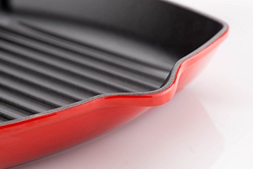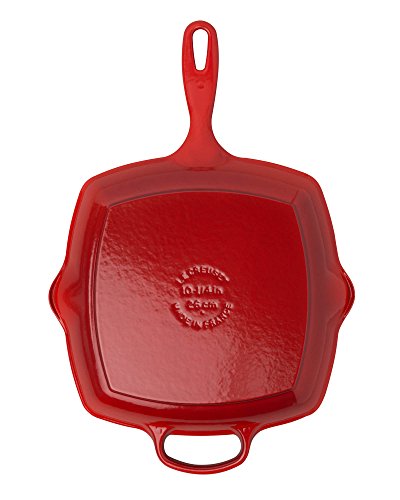 Le Creuset LS2021-2667 Cast Iron Signature Square Skillet Grill, 10 1/4", Cerise