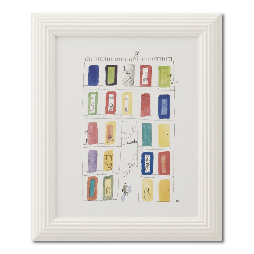 In the white color wooden frame, the surface material is the amount of glass-filled drawing.