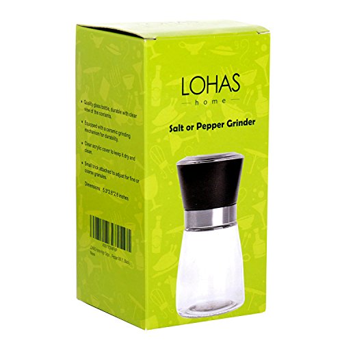 LOHAS Home High Grips Glass Salt or Pepper Grinder, Glass Body Seasoning Bottle, 1-Pack, Black