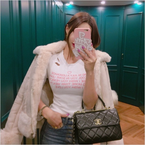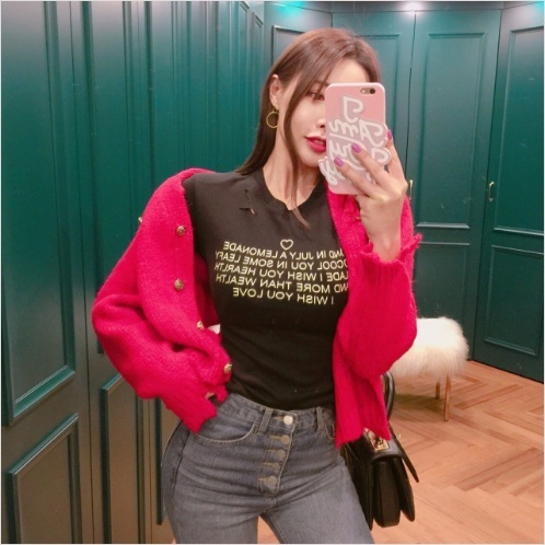 Women`s Vintage Detailed 3/4 Sleeved T-shirts Shoulder Padded T-shrts