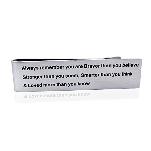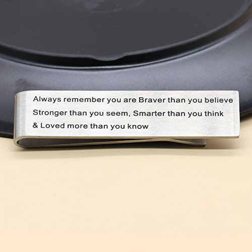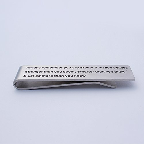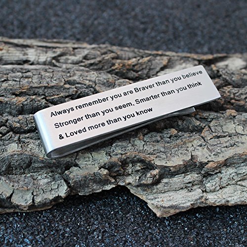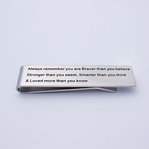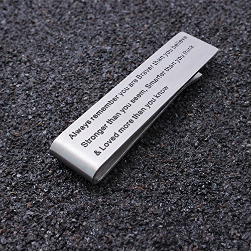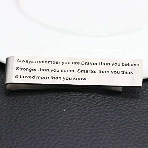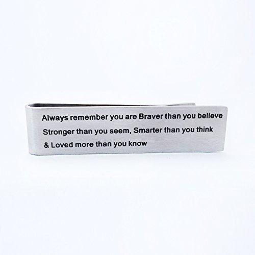 Binding : Apparel Product Description The best gift for Family Friend! - Always remember you are Braver than you believe Stronger than you seem Smarter than you think Loved more than you know - For Women Men Boy Girl ! Condition:100% New,High Quality! Material:Stainless Steel Packing Include:1pcs Money Clip(Free jewelry bag) 0