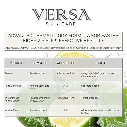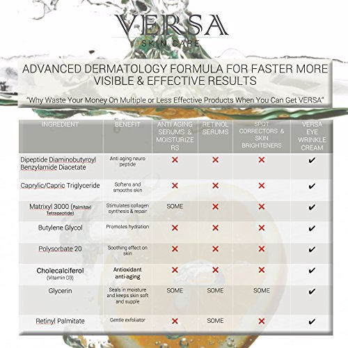 -. Binding : Misc. -. Brand : Versa Skin Care -. Color : White/Silver -. EAN : 0682821983450 -. Feature : MATRIXYL boosts collagen synthesis and promotes healing skin repair giving you smoother looking skin / REDUCES wrinkles & fine lines by increasing collagen to help smooth and plump the skin / PEPTIDE lightweight formula delivers anti-aging ingredients to restore skin elasticity and firmness / BEST Clinically Proven Ingredients To Reduce Fine Lines & Deep Wrinkles to make you look years younger / EXCELLENT BOTOX alternative reverse aging cream with Matrixyl antioxidant peptide formula -. IsAdultProduct : 0 -. Label : VERSA Skin Care -. Manufacturer : VERSA Skin Care -. Model : VSK-DWC-1 -. MPN : VSK-DWC-1 -. PackageQuantity : 1 -. PartNumber : VSK-DWC-1 -. ProductGroup : Beauty -. ProductTypeName : BEAUTY -. Publisher : VERSA Skin Care -. Studio : VERSA Skin Care -. Title : VERSA - Deep Wrinkle Cream - get rid of wrinkles - Advanced dermatology - what is the best wrinkle cream = Palmitoyl Tetrapeptide-1, Dipeptide Diaminobutyroyl Benzylamide Diacetate, 30ml -. UPC : 682821983450