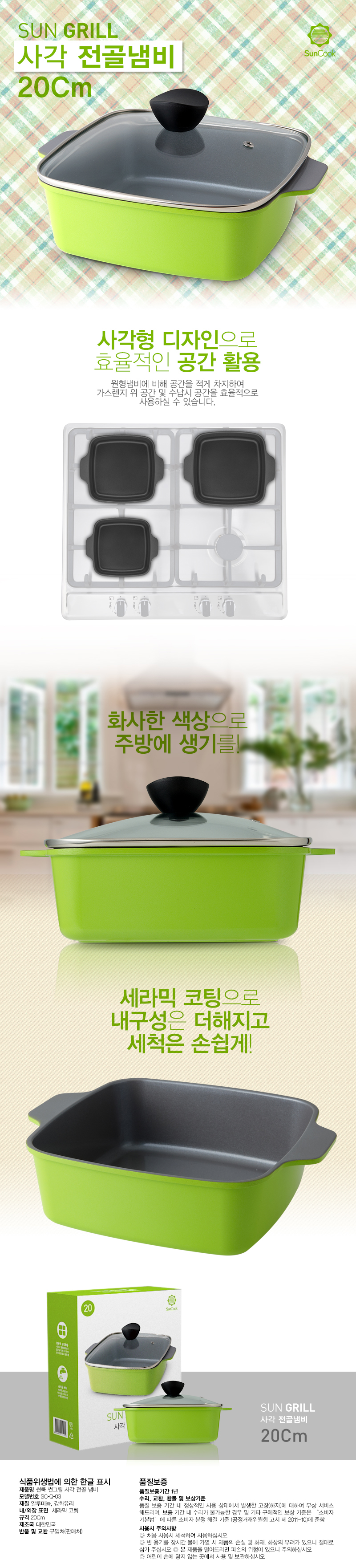 - 품명 및 모델명썬그릴 사각냄비 20cm 전골양수