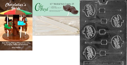 Cybrtrayd 'Trick or Treat Pumpkin Lolly' Halloween Chocolate Candy Mold with 25 4.5-Inch Lollipop Sticks and Chocolatier's Guide