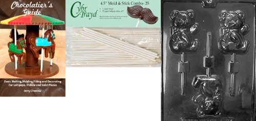 Cybrtrayd 'Sweet Teddy Bear Pop' Animal Chocolate Candy Mold with 25 4.5-Inch Lollipop Sticks and Chocolatier's Guide