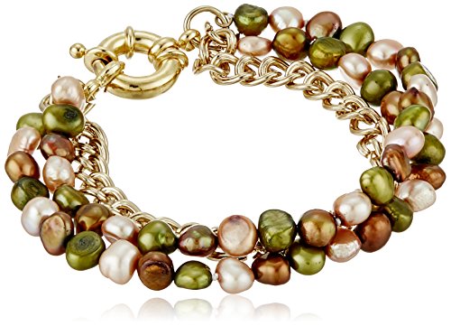 -. Title : 3 Row Multi-Color Baroque Dyed Freshwater Cultured Pearl Bracelet with Gold Tone Chain and Clasp, 7.5"