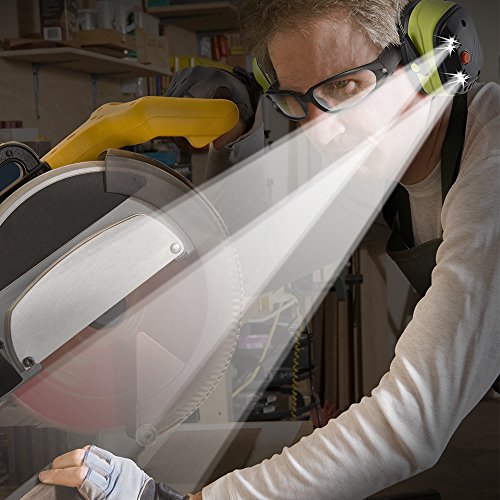 -. Feature : 4 ultra bright LED's provide more than 81 Lumens / Noise Reduction Rating of 25dB / Integrated LED's Light up your Workspace with 3 repalcebale AAA batteries included / Waterproof On/OFF switch is ideal to wear at night, during the day, in low light and under inclement weather conditions / Robust steel headband withstands demanding use, especially in tough environments