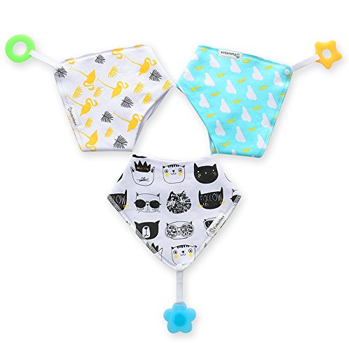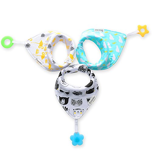 Baby Bandana Drool Bibs 3-Pack and Teething toys 3-Pack Made with 100% Organic Cotton, Super Absorbent and Soft Unisex (Vuminbox )