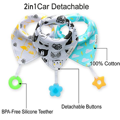 SUPER ABSORPTIVE BIBs:Made of dual super absorptive cotton on the front with 102% polyester fleece on the back, Great for teething babies No more hunting, no more having it fall to the floor, no need for an extra thing to attach to him, just put on a bib