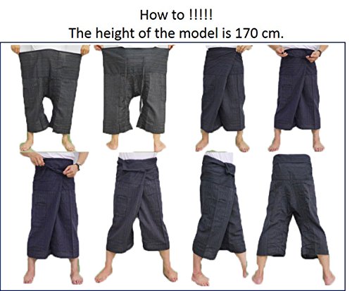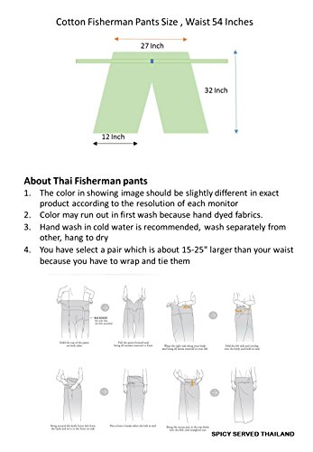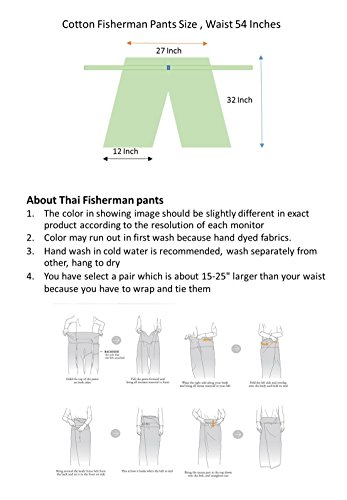 Studio : SIAM THAILAND Publisher : SIAM THAILAND Binding : Misc. Product Description Thai Cotton Drill Fisherman Yoga Pants FREE SIZE Top quality authentic 100% Cotton Drill "Gangaeng Chaolay" Thai Fisherman pants for men and women! Super-comfortable and versatile- wear them for any occasion! Thai Fisherman Pants have a very wide waist with a belt that ties from the rear. Simply step into the pants, pull the waist out to one side wrap the extra fabric around to the front and tie the belt. Length can be adjusted by folding over the top of the pants! These versatile Free size pants measure about 52" around the waist. Free Height - 29" long appx after shrinkage. Fits well below knee on most. One size fits most! For your reference- I am 5'10" tall with a 33" waist and 32" inseam. These versatile Freesize Fisherman Pants will comfortably fit XS-XL sizes. Our high quality fisherman pants are hand made in Thailand of 100% strong and durable heavy weight cotton drill. 0