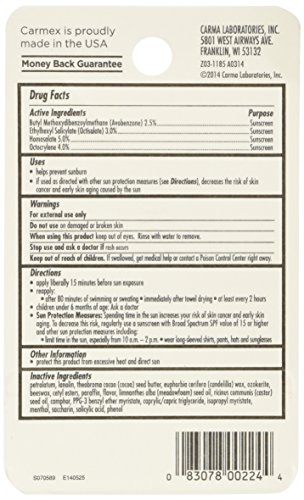 -. Feature : Carmex Ultra Smooth Vanilla Lip Balm Stick SPF 15 0.15 OZ (Pack of 6) / Formulas with meadowfoam seed oil aid moisturization, rejuvenate lips and retain softness. / Our formula uses caprylic/caP.R.Ic triglyceride, a naturally occurring skin softener that also helps prevent drying.
