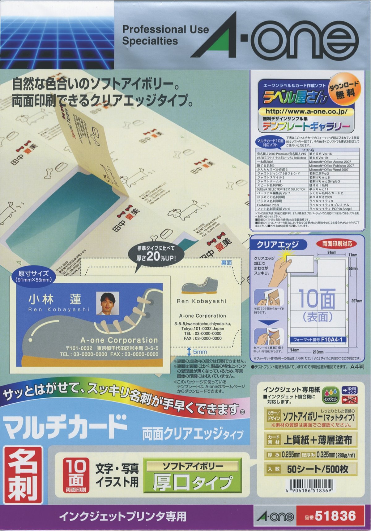 · It is a clear edge type that can be separated into business card size by peeling the separator (backing paper) after printing.