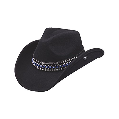 Binding : Apparel Product Description FEATURED HERE IS ONE (1) NEW PETER GRIMM BLACK KEATON WOOL FELT RHINESTONE BLUE CRYSTAL BAND DRIFTER COWBOY HAT.