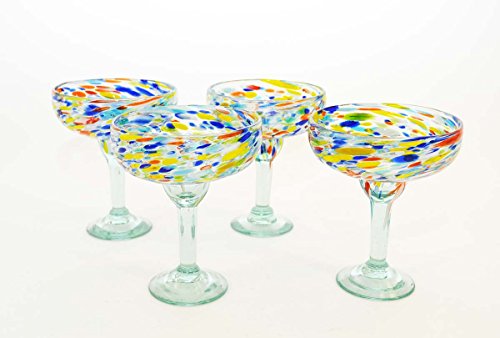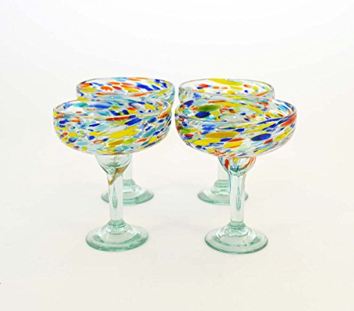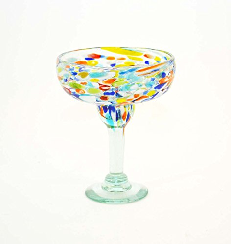 Studio : Laredo Import Publisher : Laredo Import Product Description Set of 4, Carnival Confetti Margarita Glasses-14 Ounces. Made in Mexico by hand using recycled glass. Expect slight variation in design and ounce capacity. Glass measures 6.5 inches high by 5.25 inches in diameter. Dishwasher safe top shelf. 0