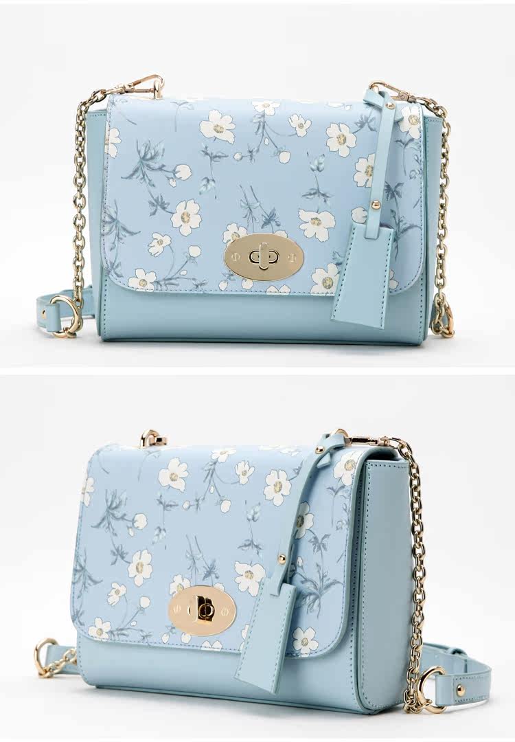 花心小铺2015夏季新款印花朵锁扣单肩斜挎休闲时尚链条女包包潮