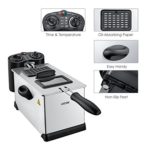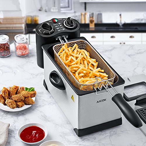 Aicok electric deep fryer have powerful heating elements, versatility for cooking different types of food with adjustable temperature and timer controls. The deep fryer is a great perk for people who either enjoy fried foods enough to make them frequently, host parties, or want to add some new snacks to the mix.