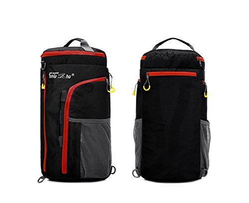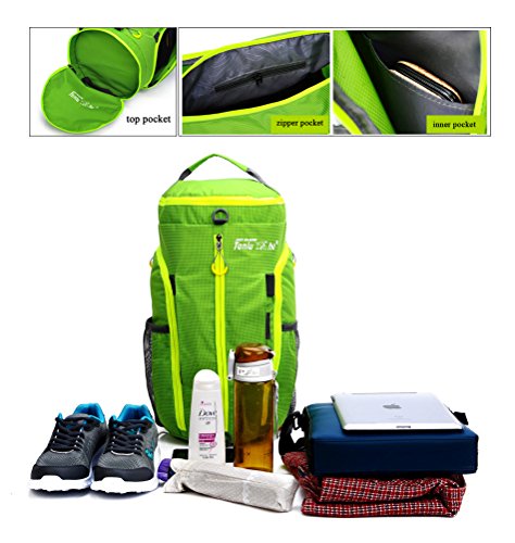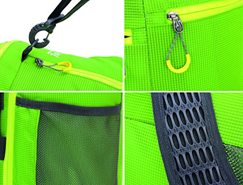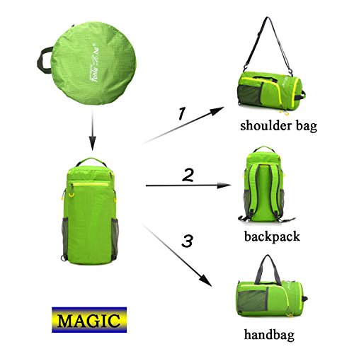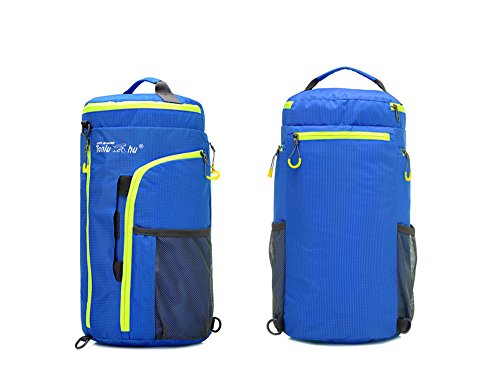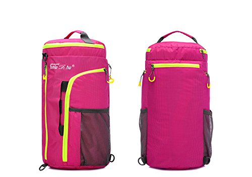 -. Feature : High Density nylon material, sturdy and waterproof. / Multifunctional as shoulder bag, backpack or handbag. / Perfect details: nice loop zipper, breathable shoulder straps, top handle. / High-capacity: top pocket, 2 large mesh pocket, 2 side multiple compartments with interior pockets for more carry room. / Bright color for your each trip.