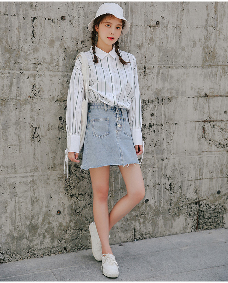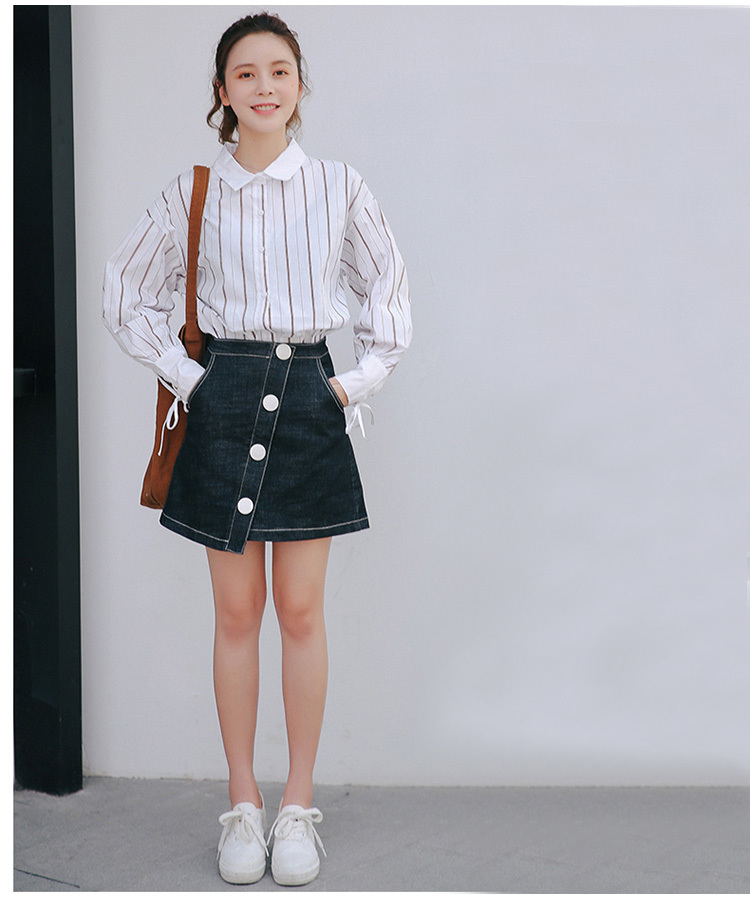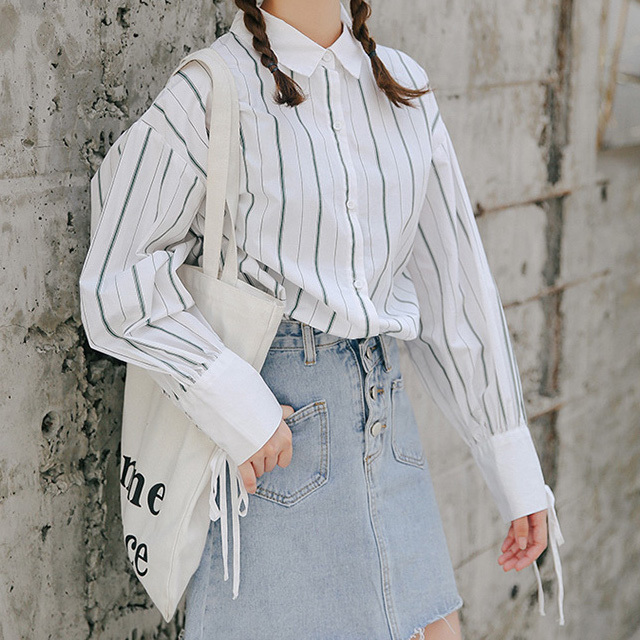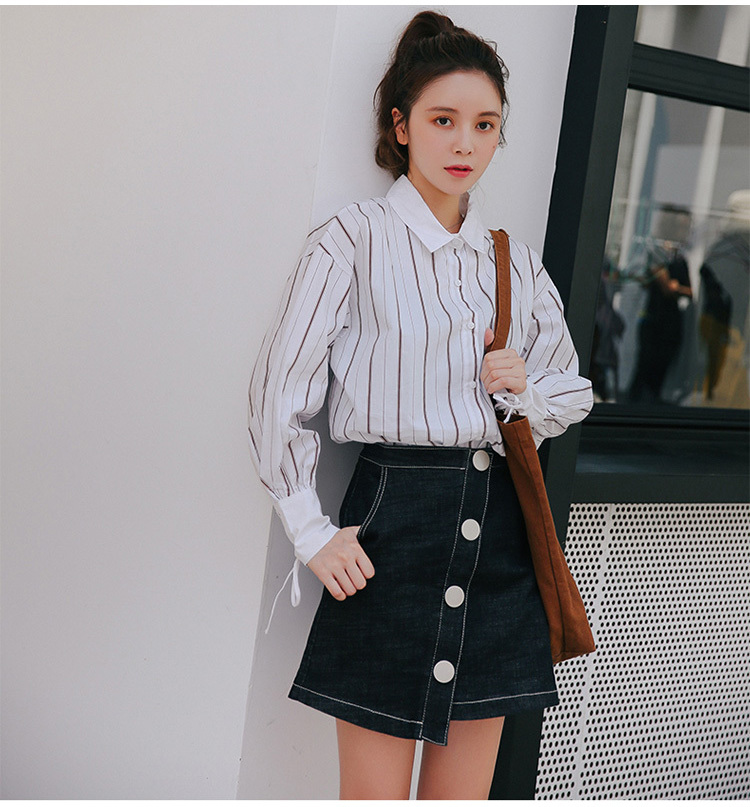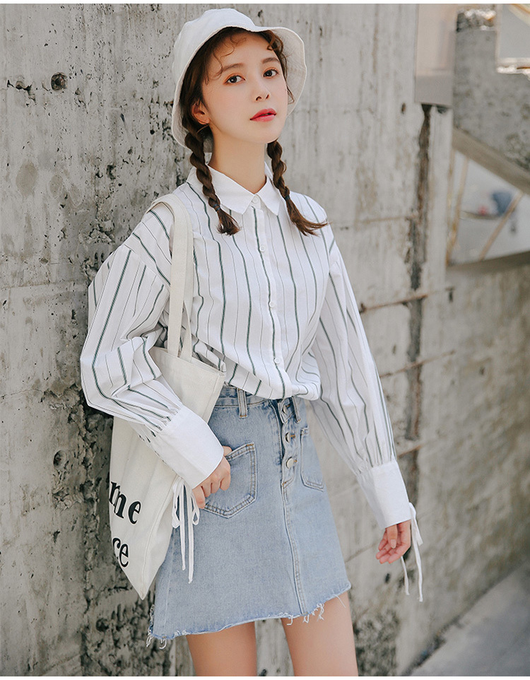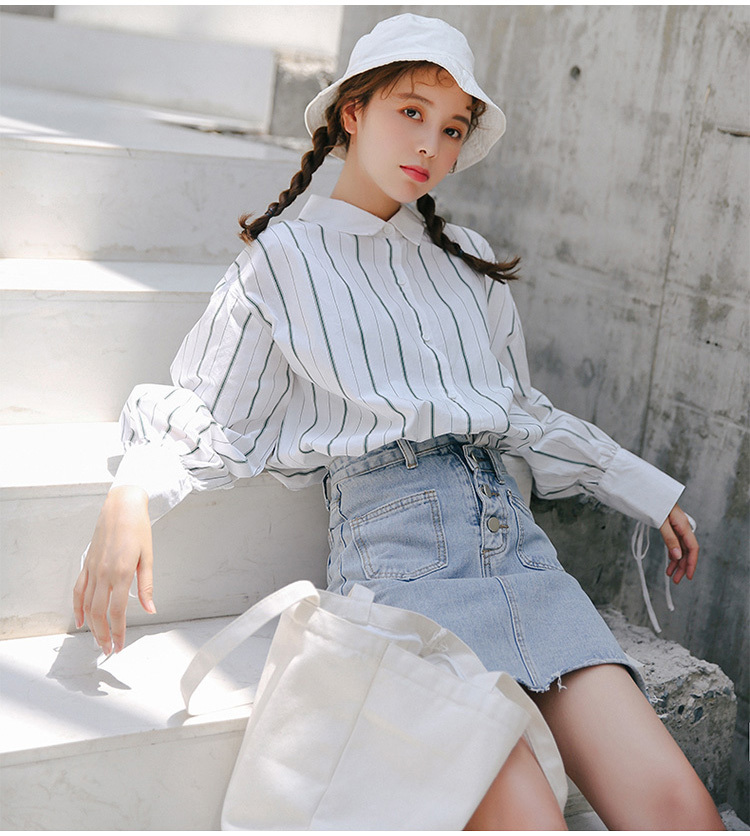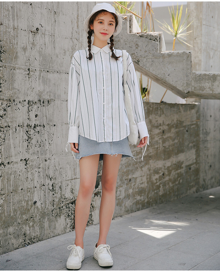 爽やかで清楚な雰囲気の長袖ストライプシャツです。