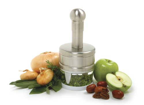 -. Feature : Measures 9.5 inches/42cm height and holds 13 ounces / Stainless steel body and blades / Has a rubber bottom to absorb the depressions and to protect your countertop / Chop onions, nuts, vegetables, herbs and more / Hand washing recommended
