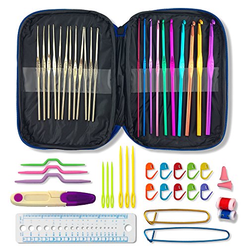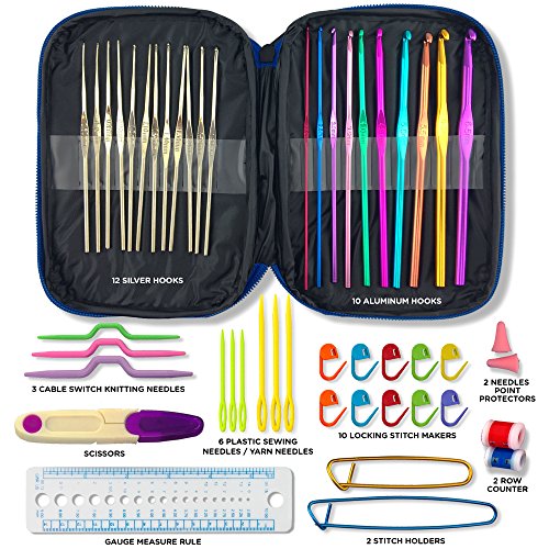 VALUE PURCHASE – The Kit contains 22 Aluminium Crochet needles with Folding Scissors, Gauge Measure Rule, 2 Row Counter, 2 Needles Point Protector, 5 Plastic Sewing Needles, 3 Cable Switch Knitting Needles, 2 Stitch Holder and 10 Locking Stitch Marker.