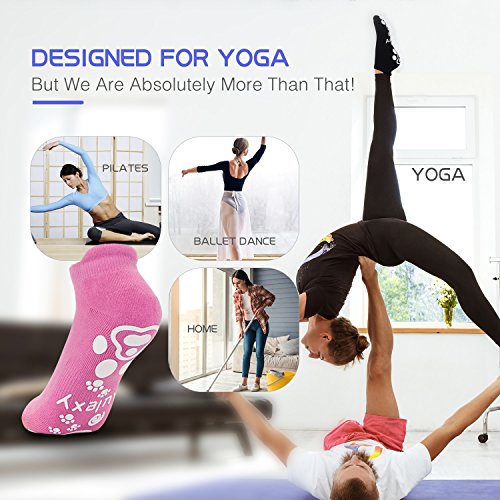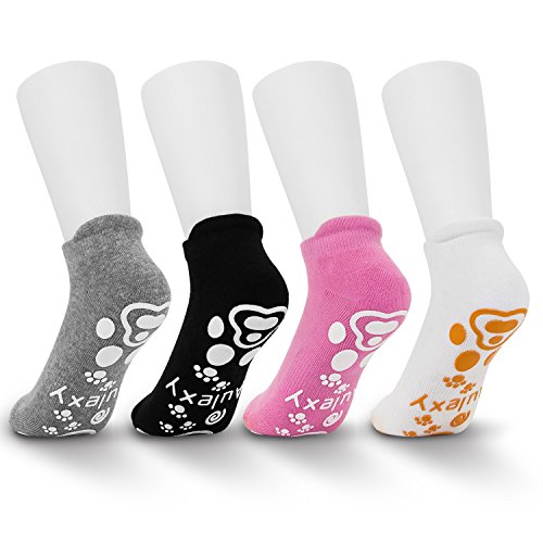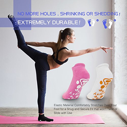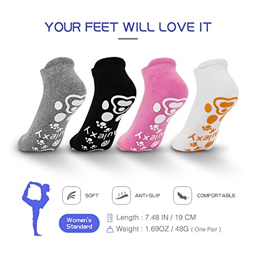 - ALL PURPOSES IN ONE. Ideal for not only yoga, but also pilates, barre, bikram and ballet dance. Perfect for home, travel, studio and hospital use too. Specifically designed for Yoga and Pilates, it offers superb grip and traction on almost any surface, which results in better balance, stability and control during workout sessions. WHAT IS IN THE PACKAGE: Socks (Black, White, Grey, Pink) x 4
