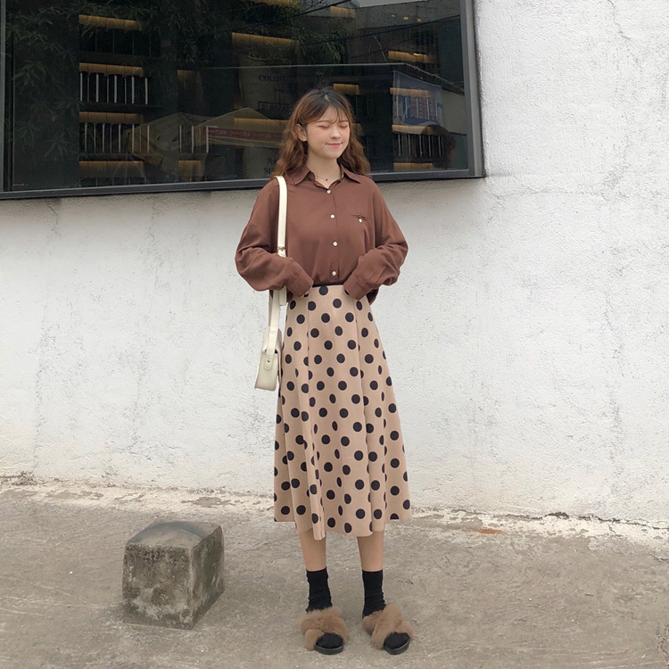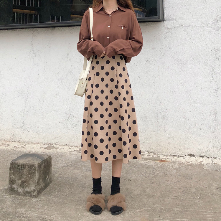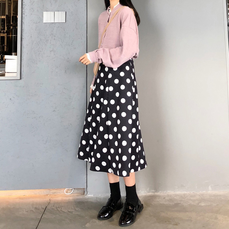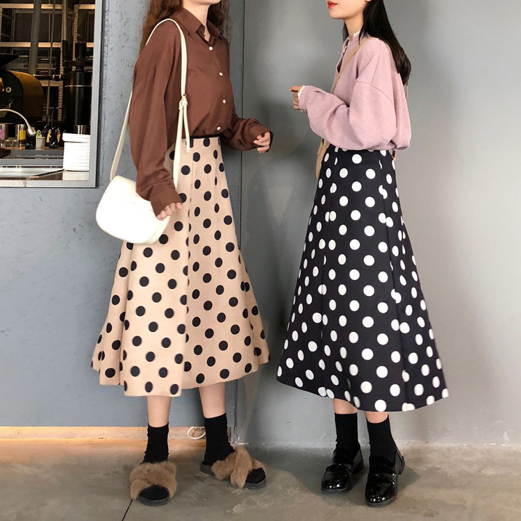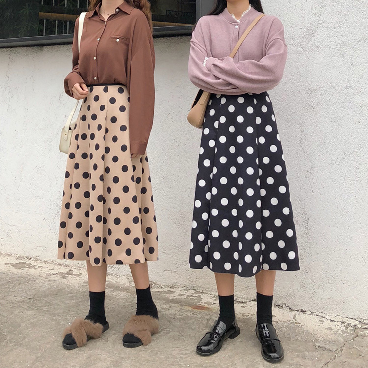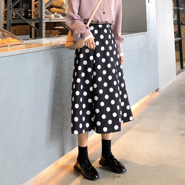 とってもキュートなドット柄を全面にあしらった、ハイウエストスカートです☆