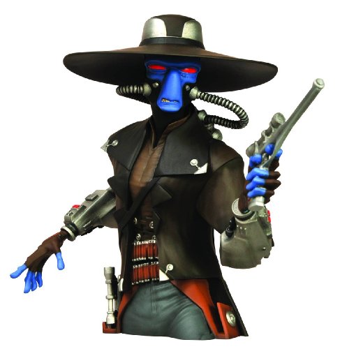 -. Binding : Toy -. Brand : Diamond Select -. Color : black, blue -. Department : toys -. EAN : 0885611621406 -. Feature : A Diamond Select release / Recreates the bounty hunter from Star Wars: The Clone Wars / Sculpted by Oluf Hartvigson / Measures 8" high / Collectible-quality paint & sculpting -. IsAdultProduct : 0 -. ItemPartNumber : JUL131817 -. Label : Diamond Comic Distributors -. LegalDisclaimer : Product description provided by manufacturer. As with all pre-sale items, the actual product release date may vary.This purchase will be charged 30 days from the time of purchase or at the time of shipping, whichever comes first. -. Manufacturer : Diamond Comic Distributors -. Model : JUL131817 -. MPN : JUL131817 -. PackageQuantity : 1 -. PartNumber : JUL131817 -. ProductGroup : Toy -. ProductTypeName : TOYS_AND_GAMES -. Publisher : Diamond Comic Distributors -. Studio : Diamond Comic Distributors -. Title : Diamond Select Toys Star Wars: Cad Bane Bust Bank Figure -. UPC : 699788703076 -. Warranty : No Warranty
