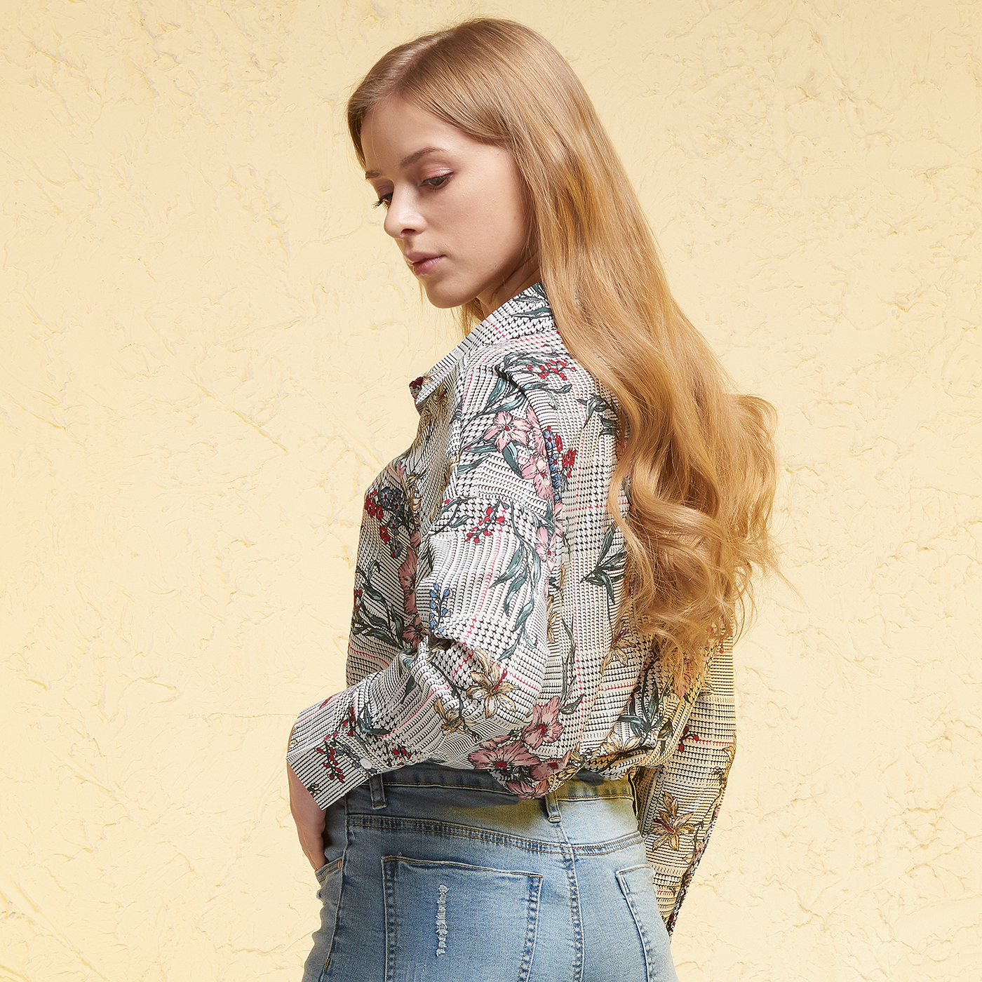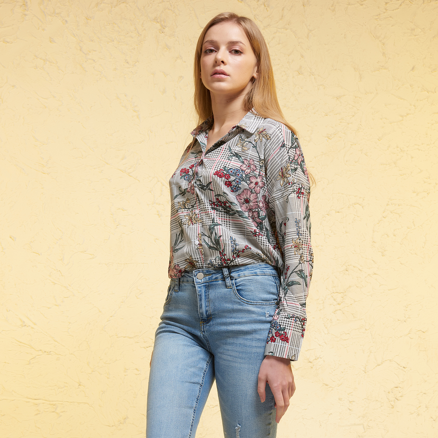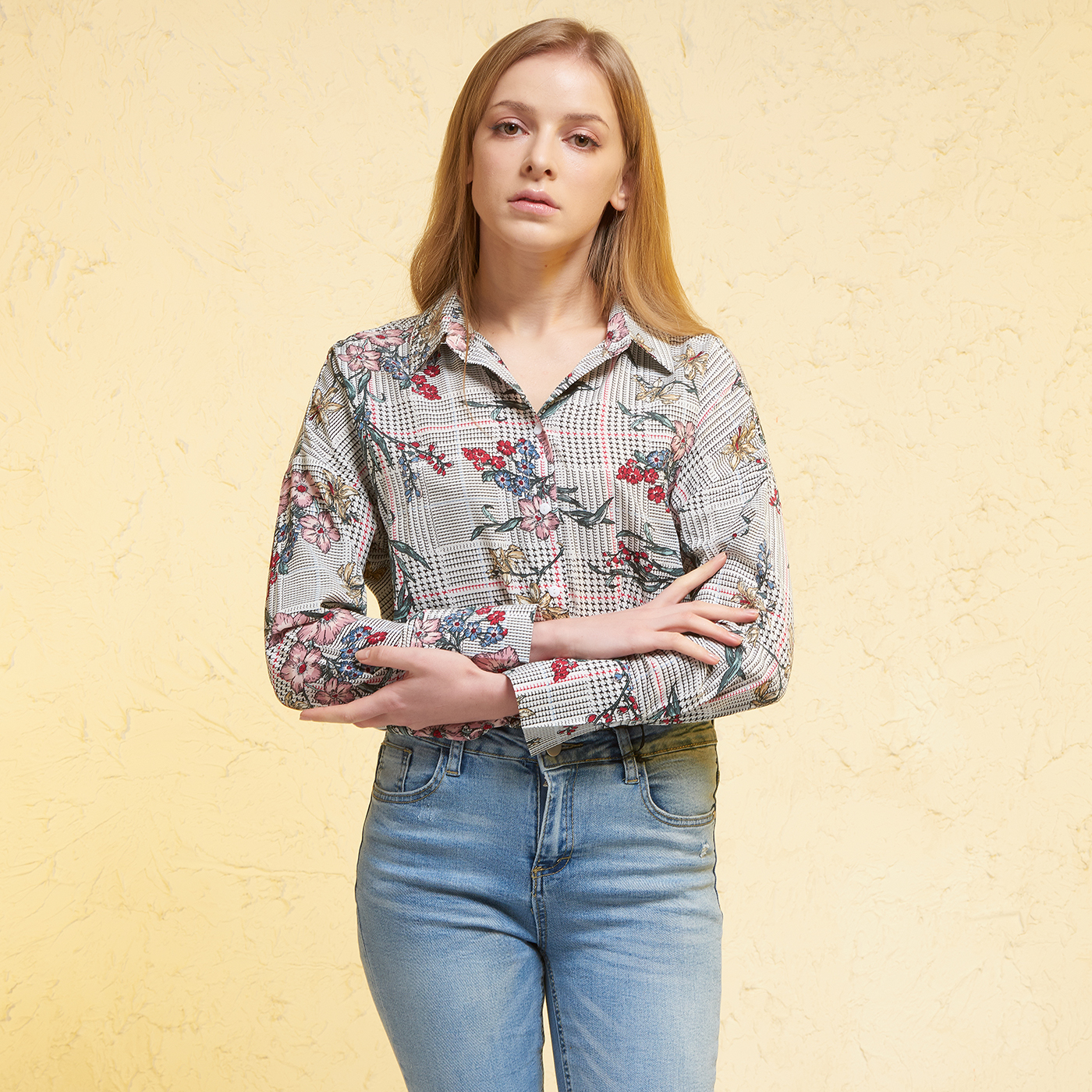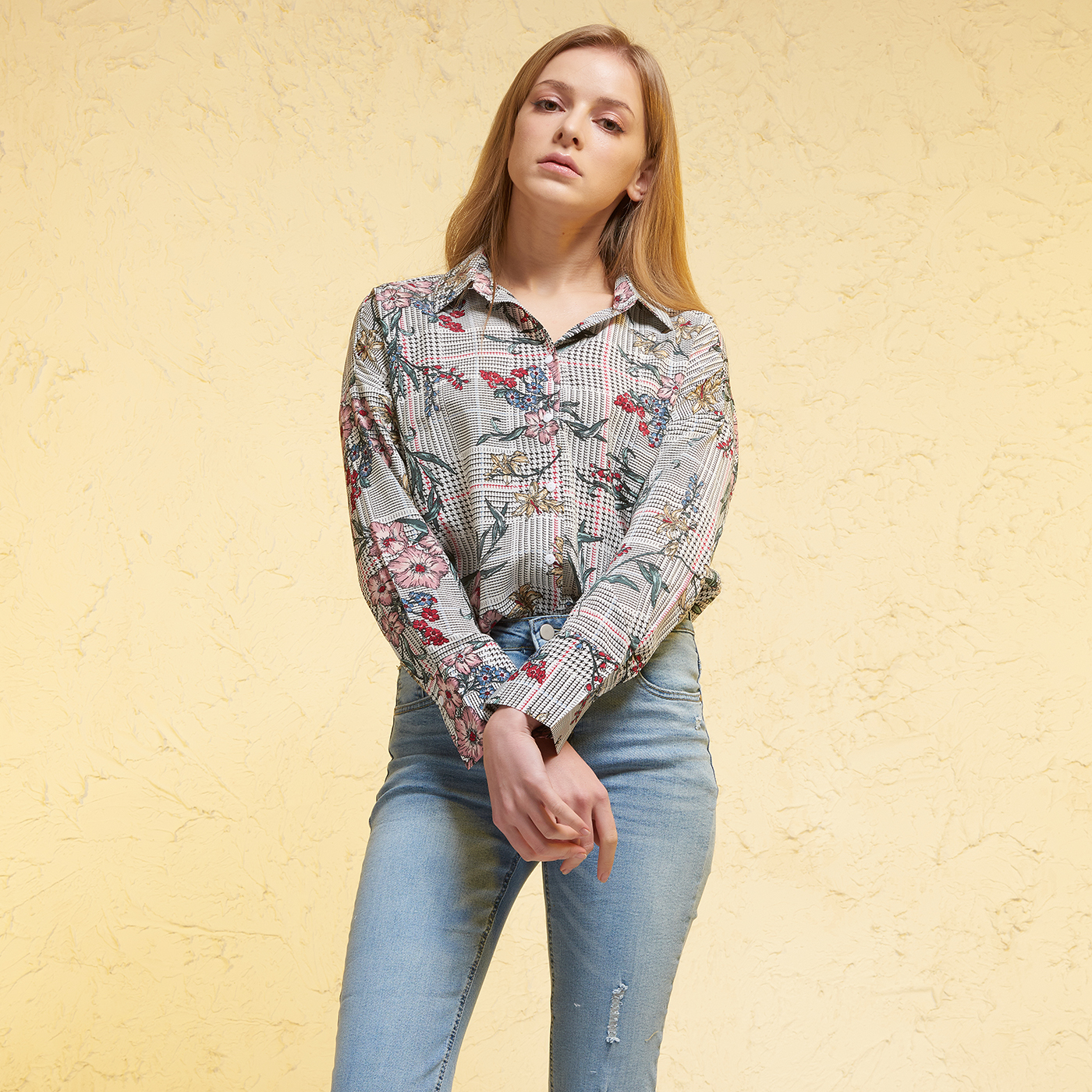 체크와 플라워 패턴의 조화로 아름답고 화려한 수채화 같은 셔츠입니다.