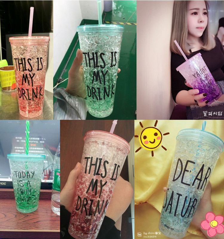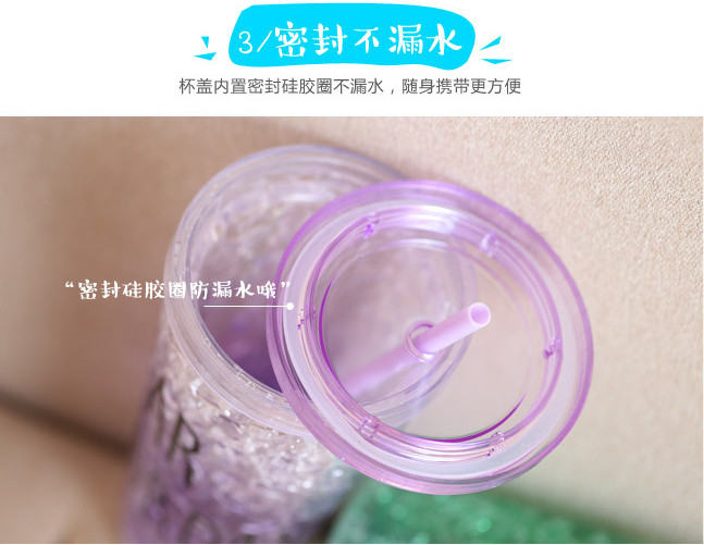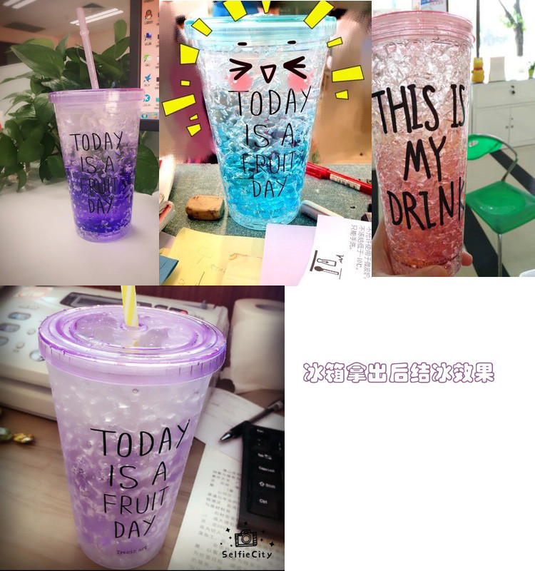 Summer Ice CupDouble cup design, inner sandwich is jelly solid glue!Into the refrigerator iced 2 hours later, pour any drink will be inside into a cup of iced drinks!