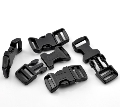 PEPPERLONELY Brand, 50 Sets Black 550 Curved Survival Bracelet Plastic Buckle 4.6x2.1cm(1 6/8"x7/8")