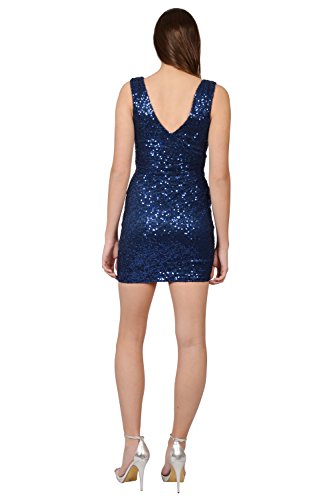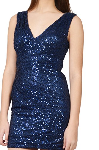 Fitted v-neck tank top sequined short dress with gathers on the side to achieve a great silhouette. Side zipper closure.