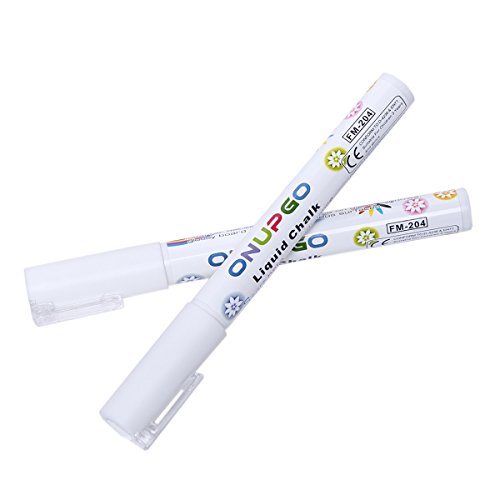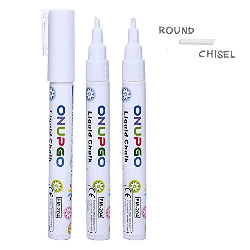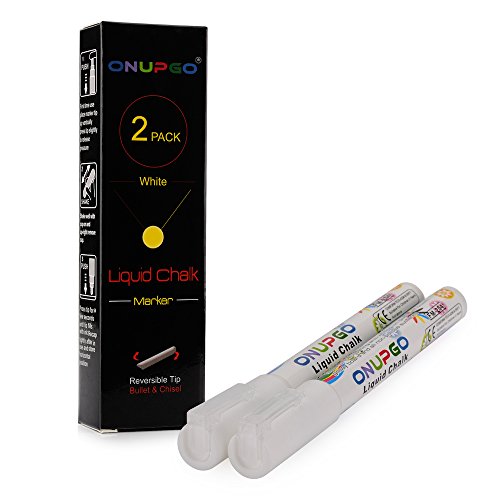 ONUPGO White Liquid Chalk Markers Pens 2-Pack 3mm Reversible Tip Chalk Pens with Erasable Ink, Great for Chalkboard, Jar Labels, Bistro, Blackboards Glass, Windows