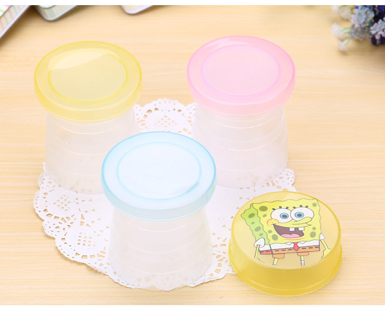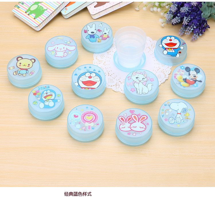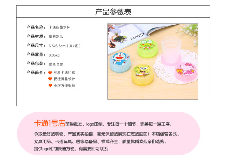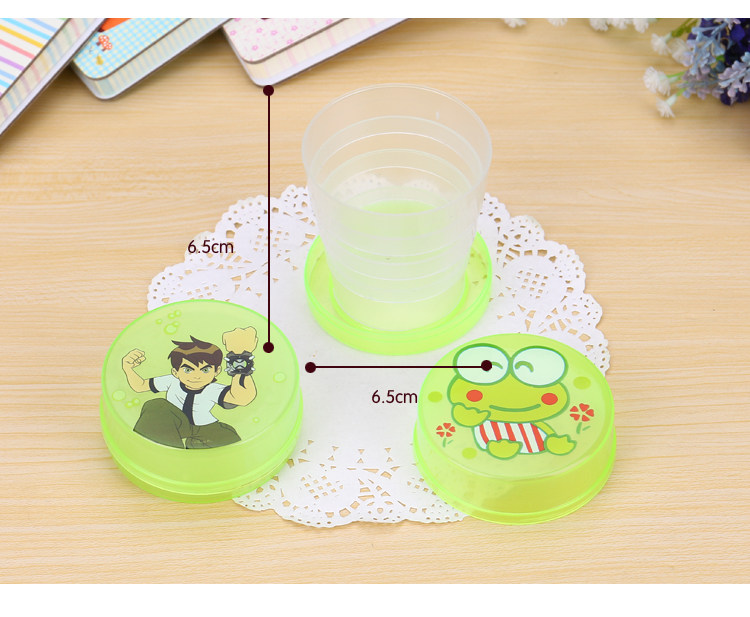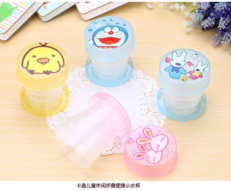 说明:卡通可爱折叠饮水杯,有杯盖方便卫生,可循环使用,更环保,是亲出差、外出、旅行的好伙伴,快带回家吧