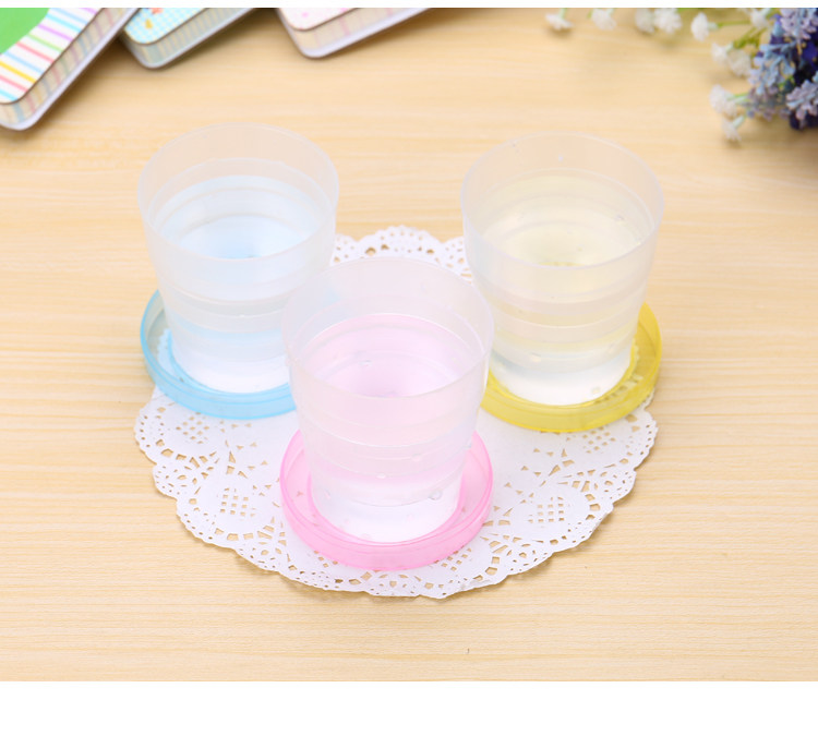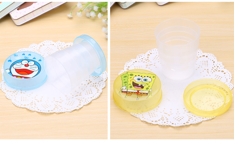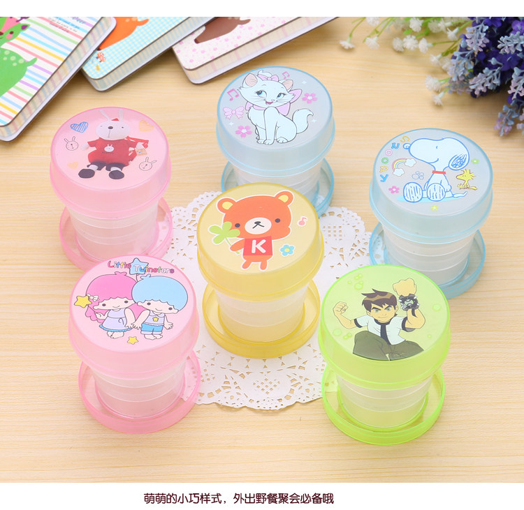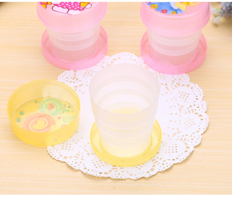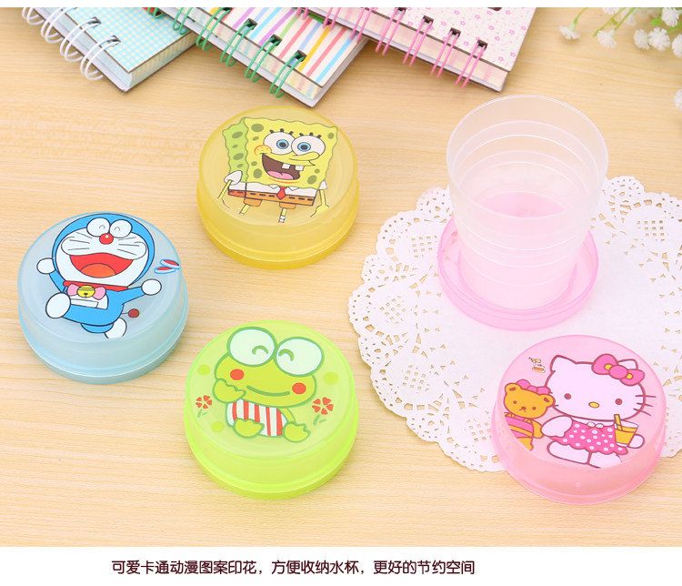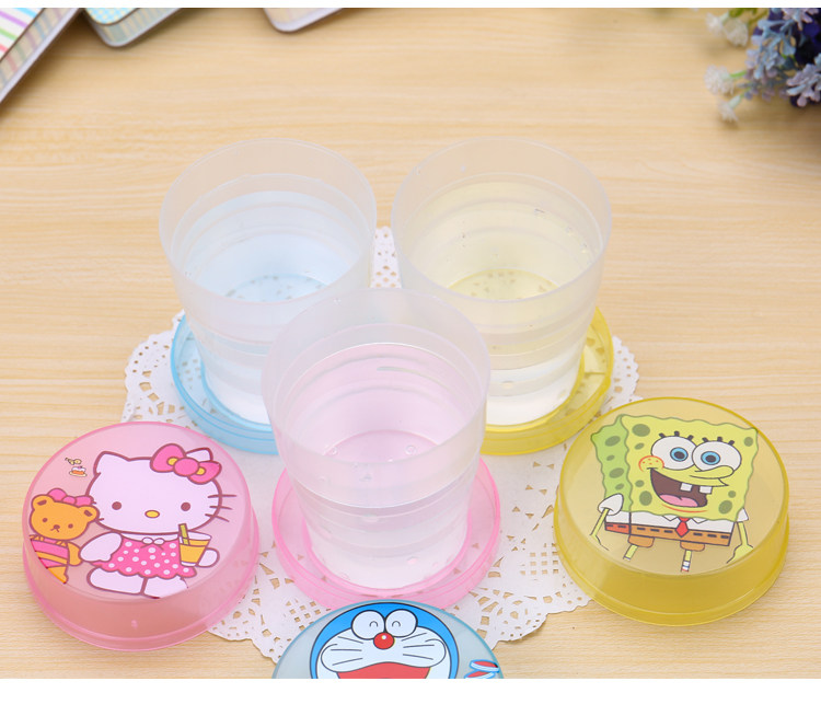 日韩创意卡通便携式旅行塑料伸缩杯折叠杯 户外运动折叠杯子水杯