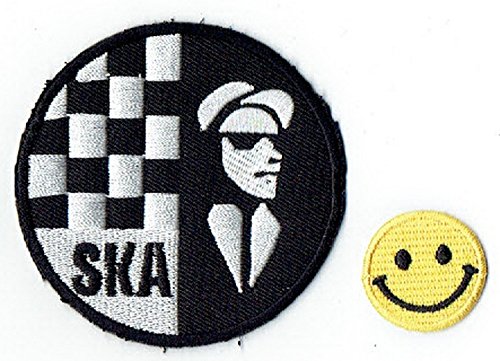 "SKA : a music genre that originated in Jamaica" Applique embroidered iron on PATCHES (Wappen, ワッペン , 패치) with Yellow Tiny Smiley Patches by PATCH CUBE