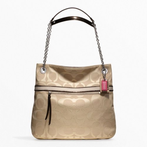 Coach Poppy Metallic Signature Slim Tote Convertible Bag 21161 Khaki Bronze