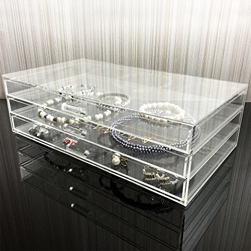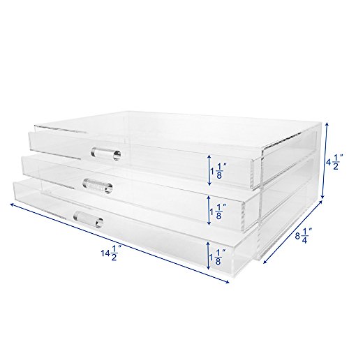 -. Binding : Kitchen -. Brand : Ikee Design -. Color : light black -. EAN : 0812646026890 -. Feature : MAKEUP and JEWELRY STORAGE: This 3 drawers display keeps everything in one place and fast and convenient to use / UNIQUE DESIGN: Simple yet elegant design. Looks terrific on the vanity, in the closet, countertop, and anywhere / MATERIAL: Made of acrylic and made in Taiwan / DIMENSIONS: 4 1/2"W x 8 1/4"D x 4 1/2" H / ACCESSORIES and LINER ARE NOT INCLUDED -. IsAutographed : 0 -. Label : Ikee Design -. Manufacturer : Ikee Design -. Model : COM3570C -. MPN : COM3570C -. PackageQuantity : 1 -. PartNumber : COM3570C -. ProductGroup : Home -. ProductTypeName : HOME -. Publisher : Ikee Design -. Size : 14 1/2"W x 8 1/4"D x 4 1/2" H -. Studio : Ikee Design -. Title : Ikee Design Premium Acrylic 3 Drawer Makeup Organizer Cosmetic Storage Jewelry Display Case -. UPC : 812646026890