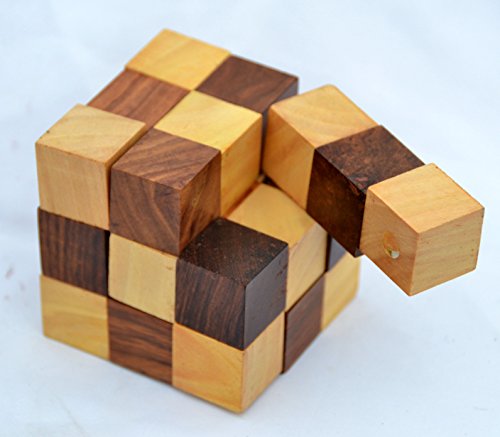 Brass Nautical Wooden Puzzle Adult Snake Cube with Wooden Gift Box Handmade Gifts India