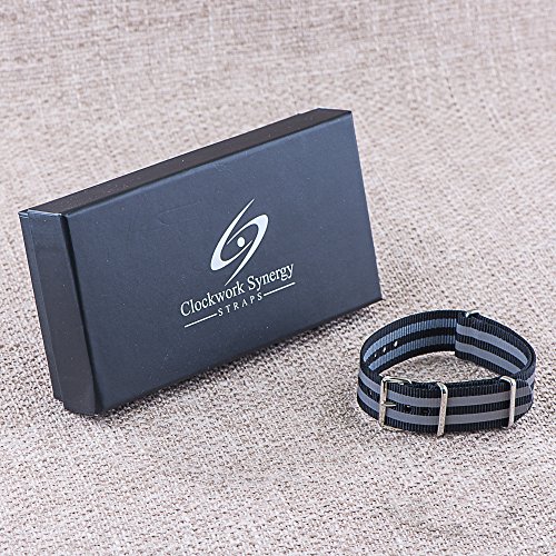 -. Title : Clockwork Synergy Classic Nylon Nato watch straps bands (22mm, Reflective Black / Silver)