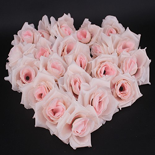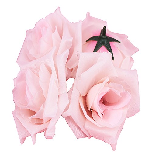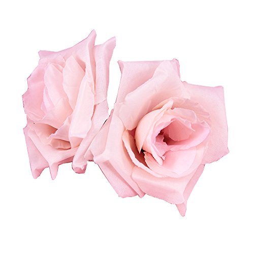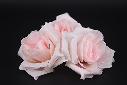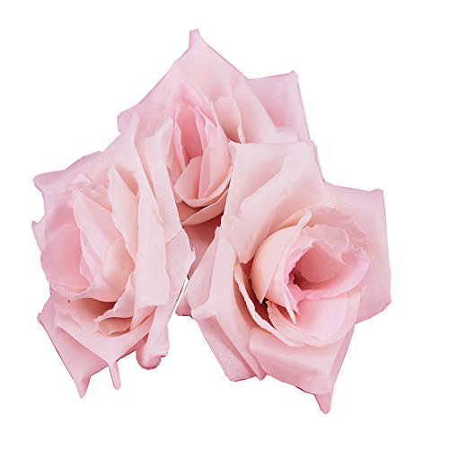 Channelook Silk Cream Roses Flower Head, Artificial Flowers Heads for Wedding Flowers Accessories Make Bridal Hair Clips Headbands Dress (Pink)