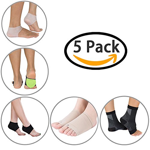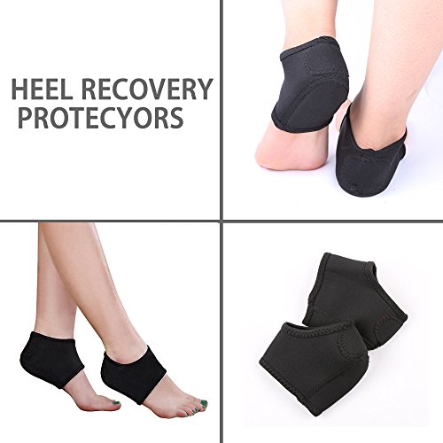 - 1.5 IN 1 COMPREHENSIVE KIT: With this comprehensive kit of plantar fasciitis Silicone Heel Protectors, Heel Recovery Protectors?Arch Support Pads, Compression socks, Plantar Fasciitis Sleeve, which provide you with the ultimate solution to any of such problems. You can also share them with other family members while switching off and you don’t have to share or fight over whose turn is it, or who's hurts the most.