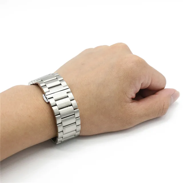 | [해외] CARLYWET 22 미리메터 실버 316L 스틸 팔찌 손목 시계 밴드 스트랩 벨트 더블 푸시 걸쇠 moto motorola 360 smart watch 1gen |