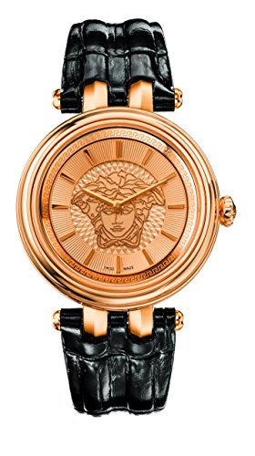 • Round watch featuring rose gold ion-plated dial with guilloche texture and large Medusa logo at center