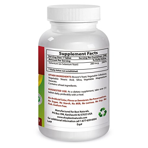 Best Naturals SELENIUM SUPPLEMENT SUPPORTS THYROID, HEART & MORE - Selenium fights off free radicals, supports a healthy thyroid, prostate & heart function. Selenium also plays a key role in metabolism function and is effective for men and women.