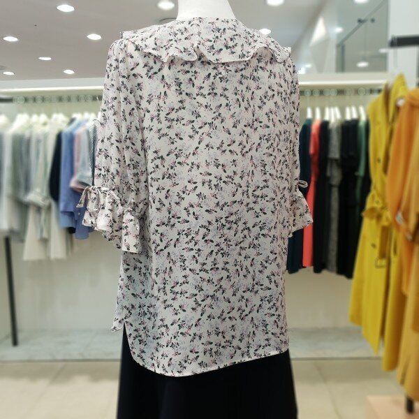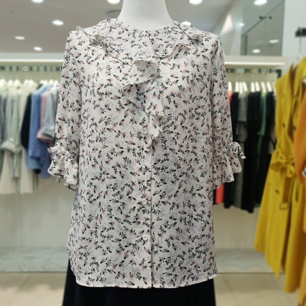 소매 셔링과 넥라인 프릴장식으로 여성스럽고 사랑스러운 블라우스예요♡